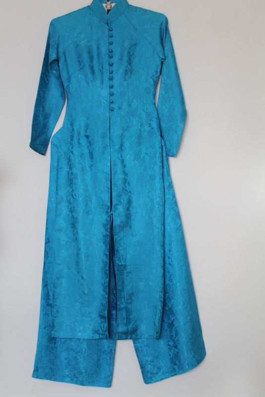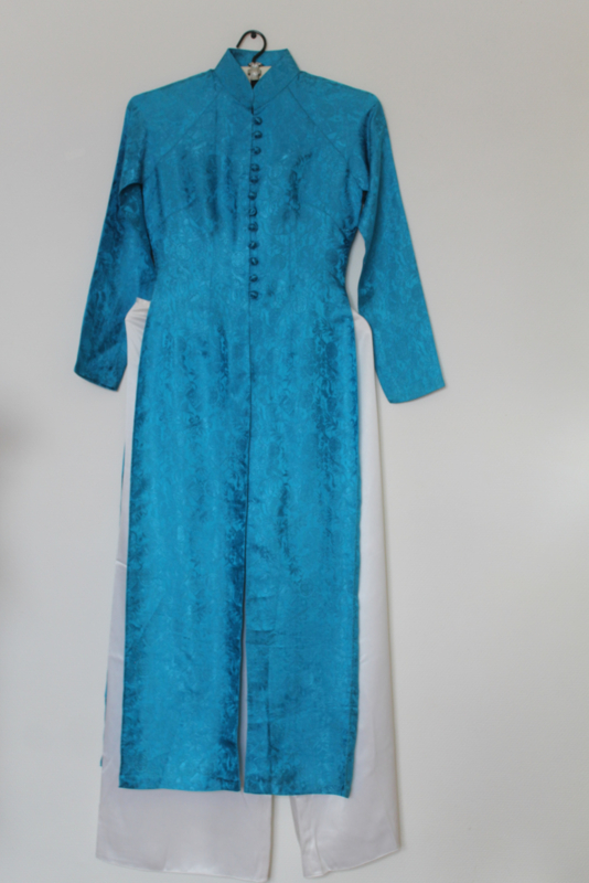 Deze Áo Dài eert de klassieke snit met een authentieke voorsluiting:
