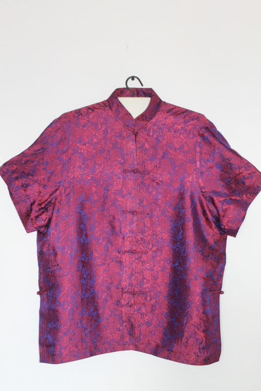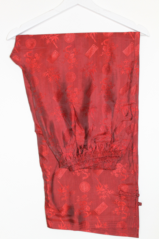 Zijden Lounge Set – Uniseks (Shirt & Broek)maat S- M- L -XXlRood met stempel en bloesem 2 XL